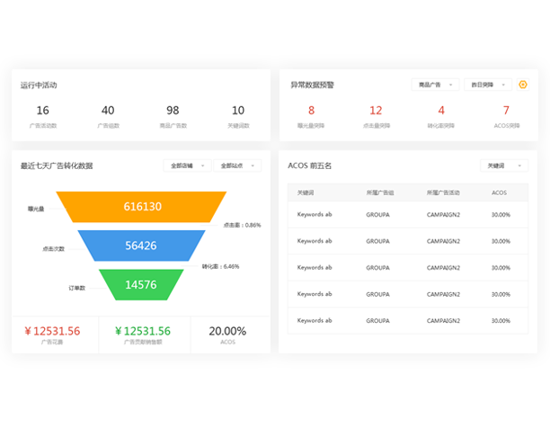 Through commodity analysis, summary statistics and analysis, let sellers view the effectiveness of advertising, so as to provide an effective reference for selecting keywords, bids, and quickly make advertising decisions.