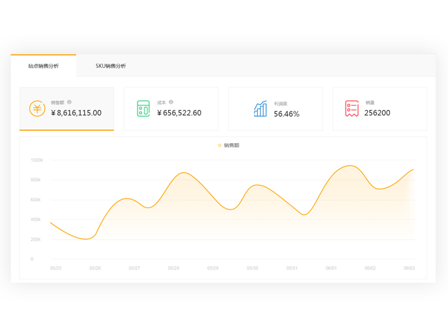 Gain insight into all sales data, accurately capture the sales of each SKU/site, and monitor the sales trends.