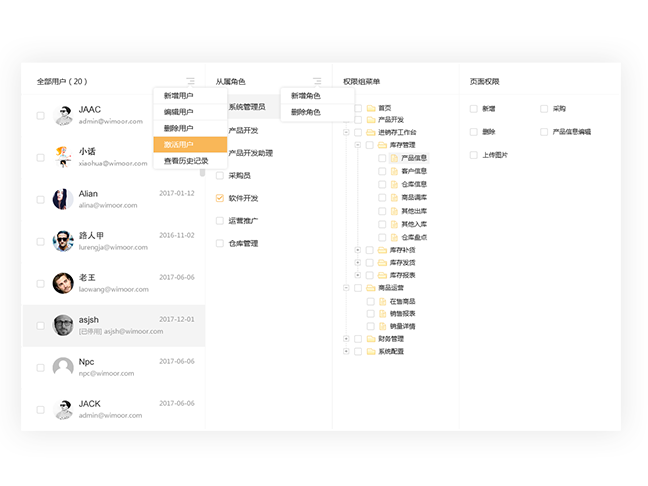 Refine the permissions of each page/feature of each feature. Prevent data leakage, avoid misuse of personnel, and cause system data confusion. Create a plurality of sub-accounts under a master account to work collaboratively on the team, according to the job division.